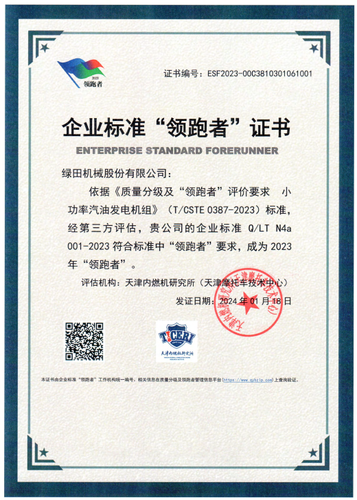 国家级殊荣!绿田获评“企业标准领跑者”荣誉称号